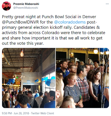 Here is the link to my June 28, 2018, Twitter thread review of a 2018 post-primary rally held in Denver by the Colorado Democrats.